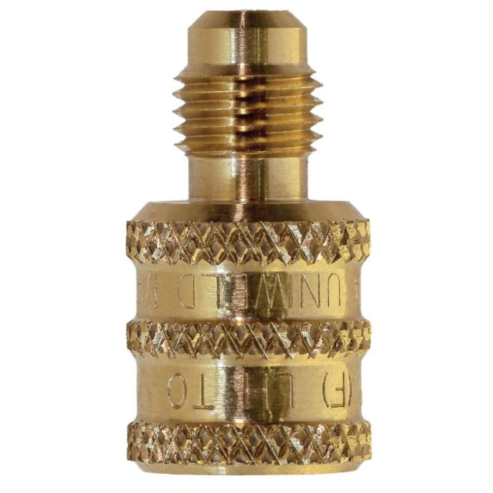 Adaptador de tanque Uniweld UA2LA A2L 1/4 pulg. FF (LH) x 1/4 pulg. MF (RH)